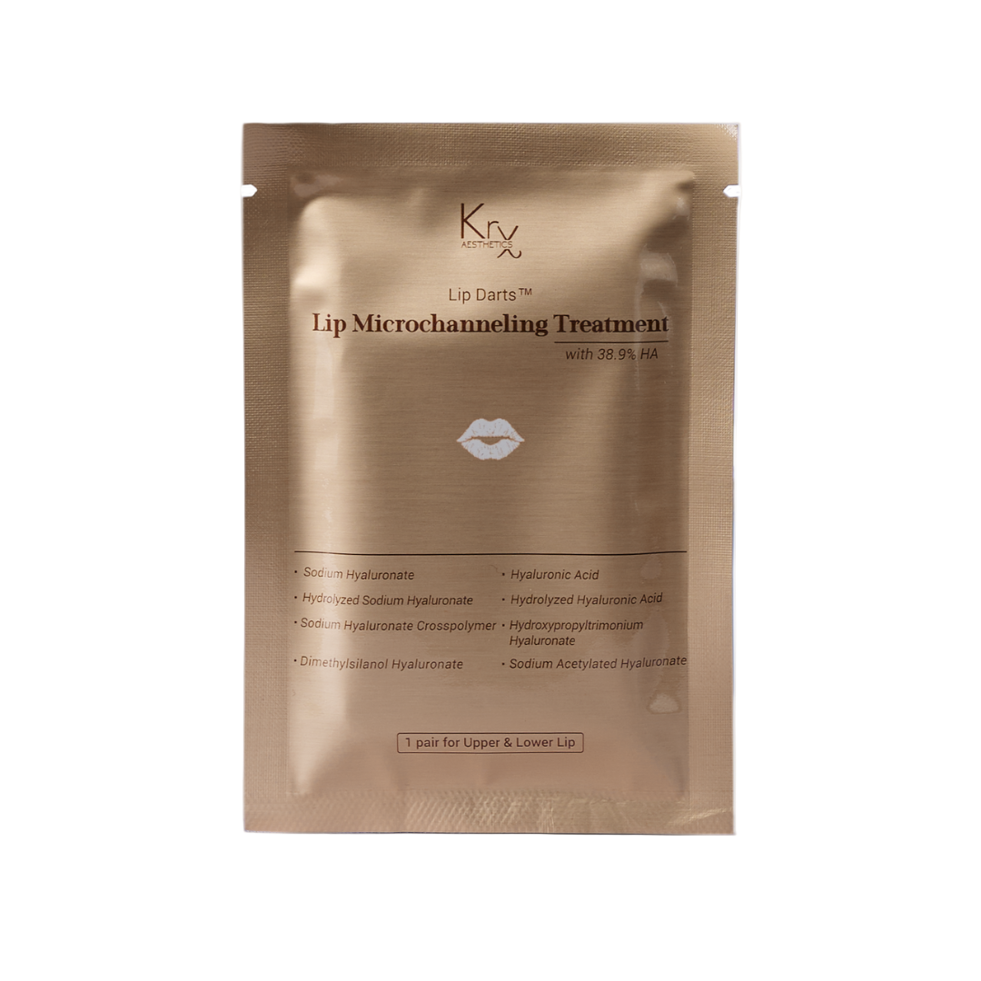 KrX Lip Darts are a microchanneling treatment for the lips. Each patch contains active ingredients which are suspended within soluble spears. When applied to the lips, the microneedle-like spears create microchannels which increase absorption of ingredients.