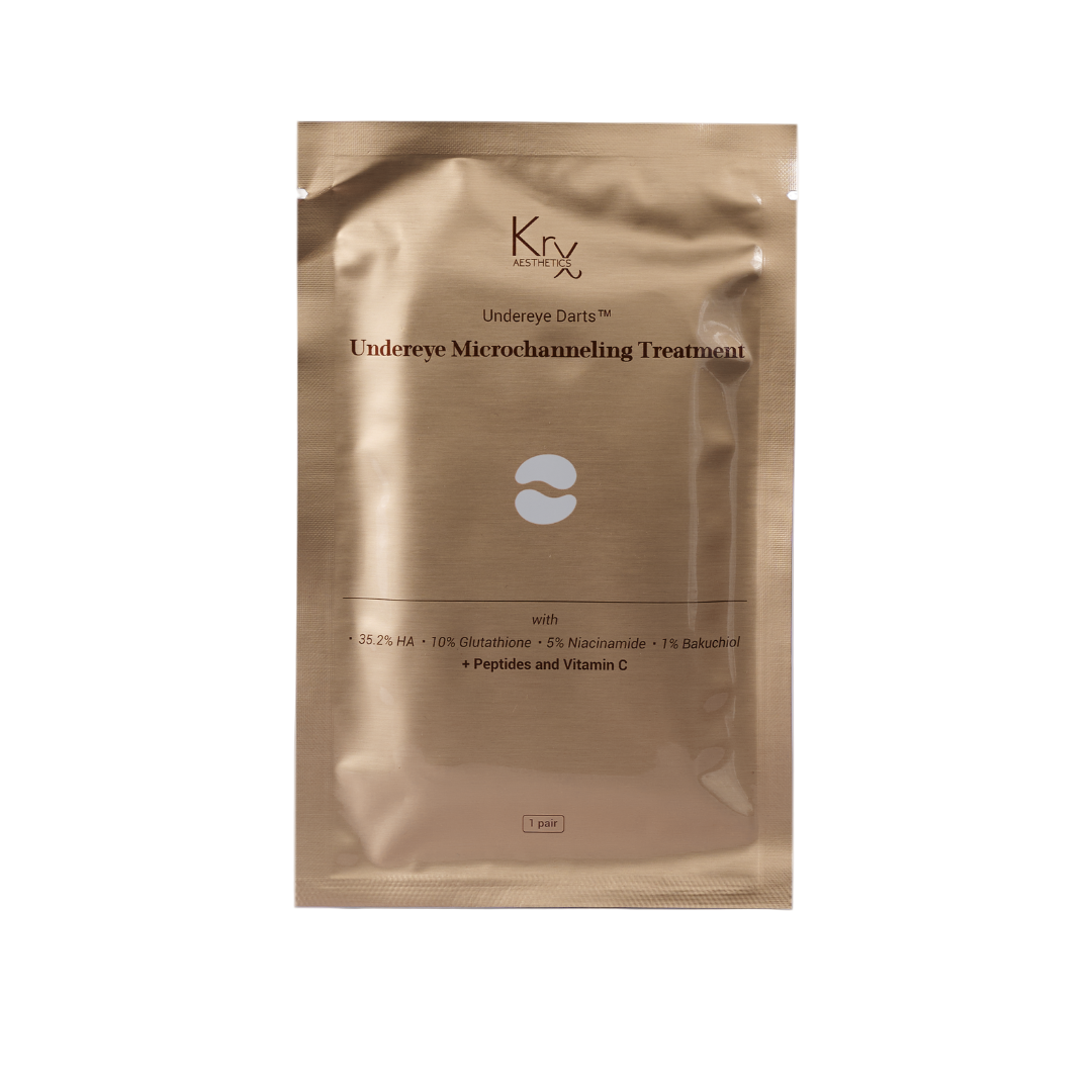 KrX Undereye Darts is a microchanneling treatment. Each patch contains active ingredients which are suspended within soluble spears. When applied under the eyes the microneedle-like spears create microchannels which increase absorption of ingredients.